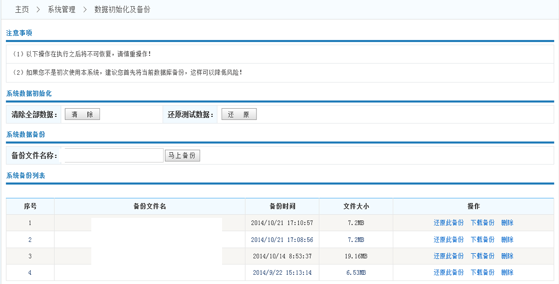 還原此備份:點(diǎn)擊還原此備份會將此備份還原到系統(tǒng)中;還原后將覆蓋系統(tǒng)原有的數(shù)據(jù)