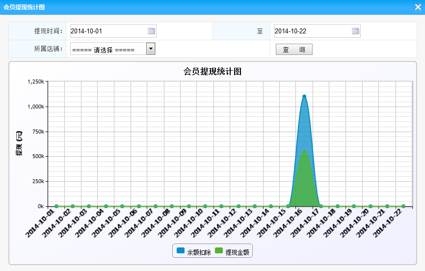 3.會員提現(xiàn)統(tǒng)計:將統(tǒng)計在滿足設(shè)定的條件下的所有提現(xiàn)的概況