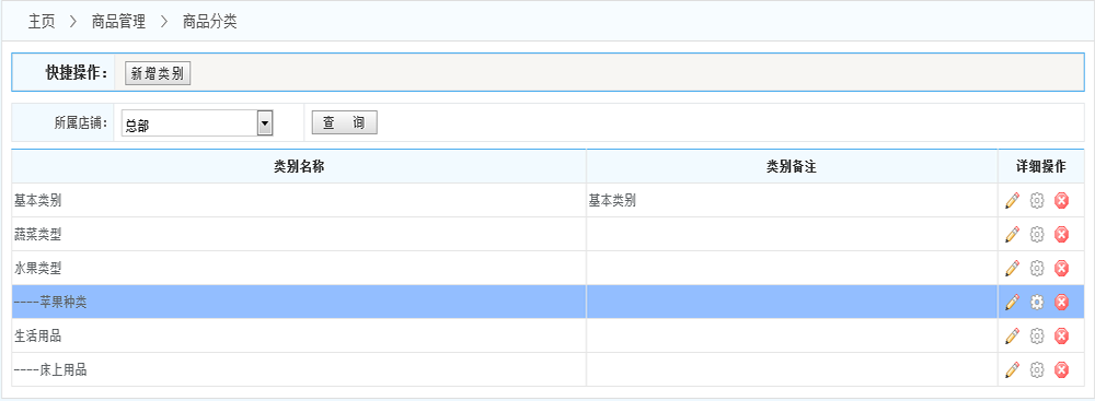 所屬店鋪:根據店鋪查找 查找指定店鋪下的商品分類!