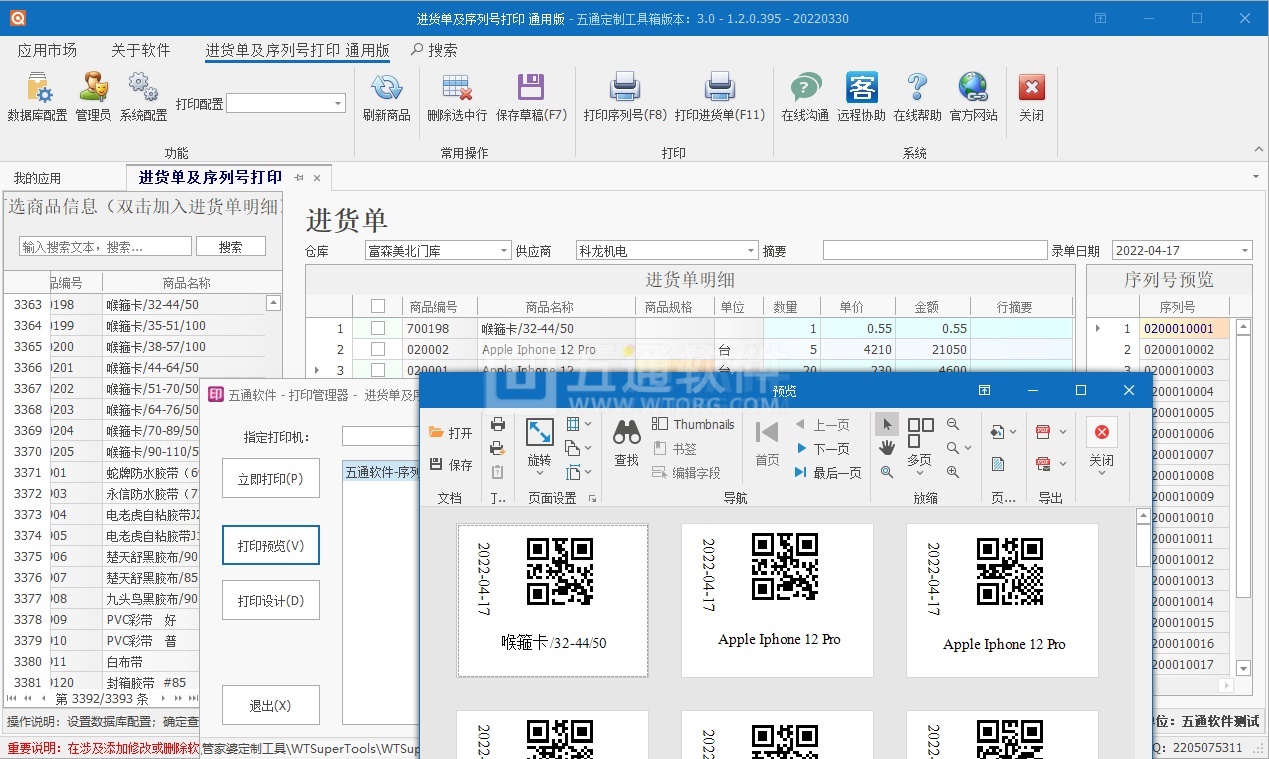 【五通定制管家婆輝煌應(yīng)用】序列號批量生成打印應(yīng)用,填寫數(shù)量自動生成對應(yīng)序列號,及序列號批量打印
